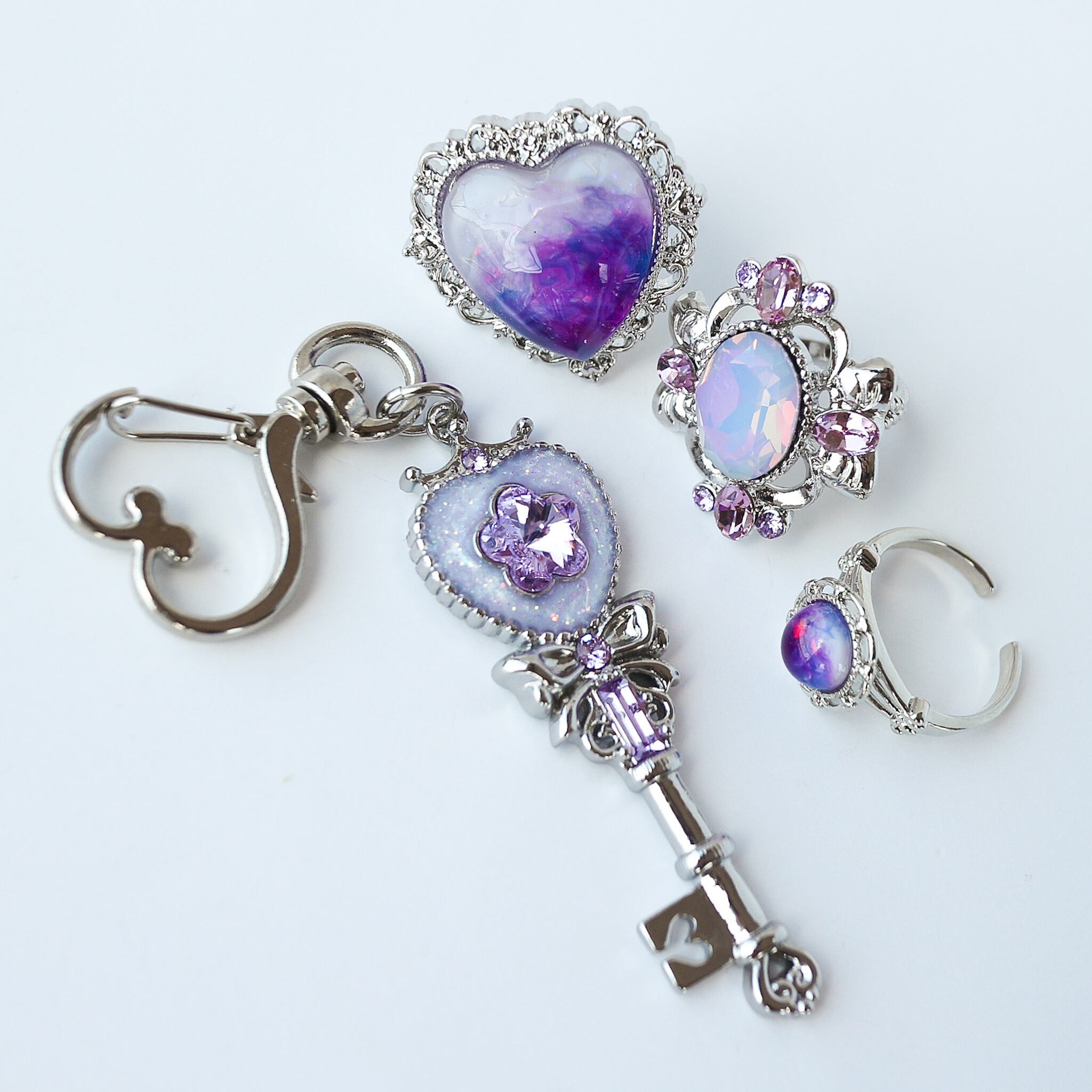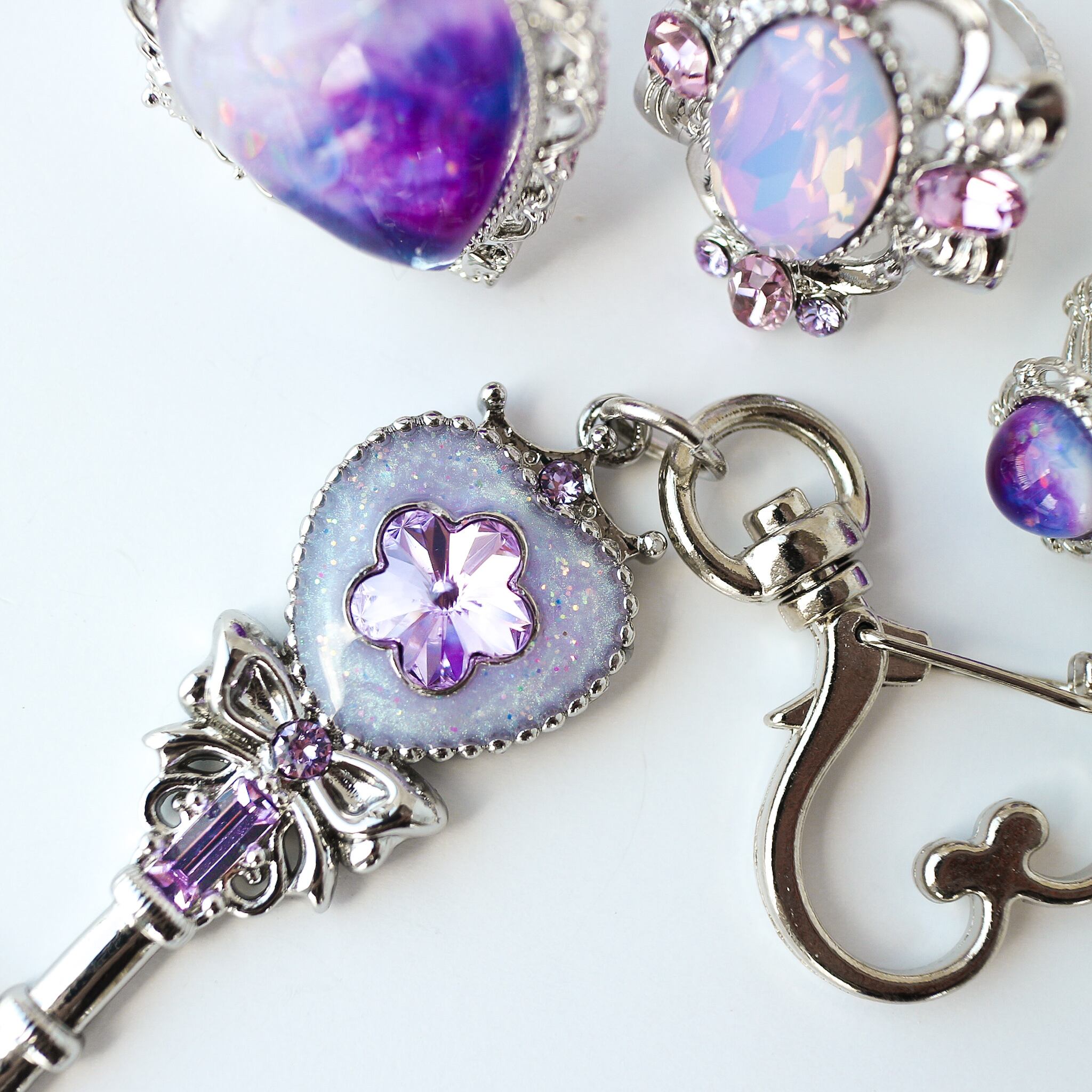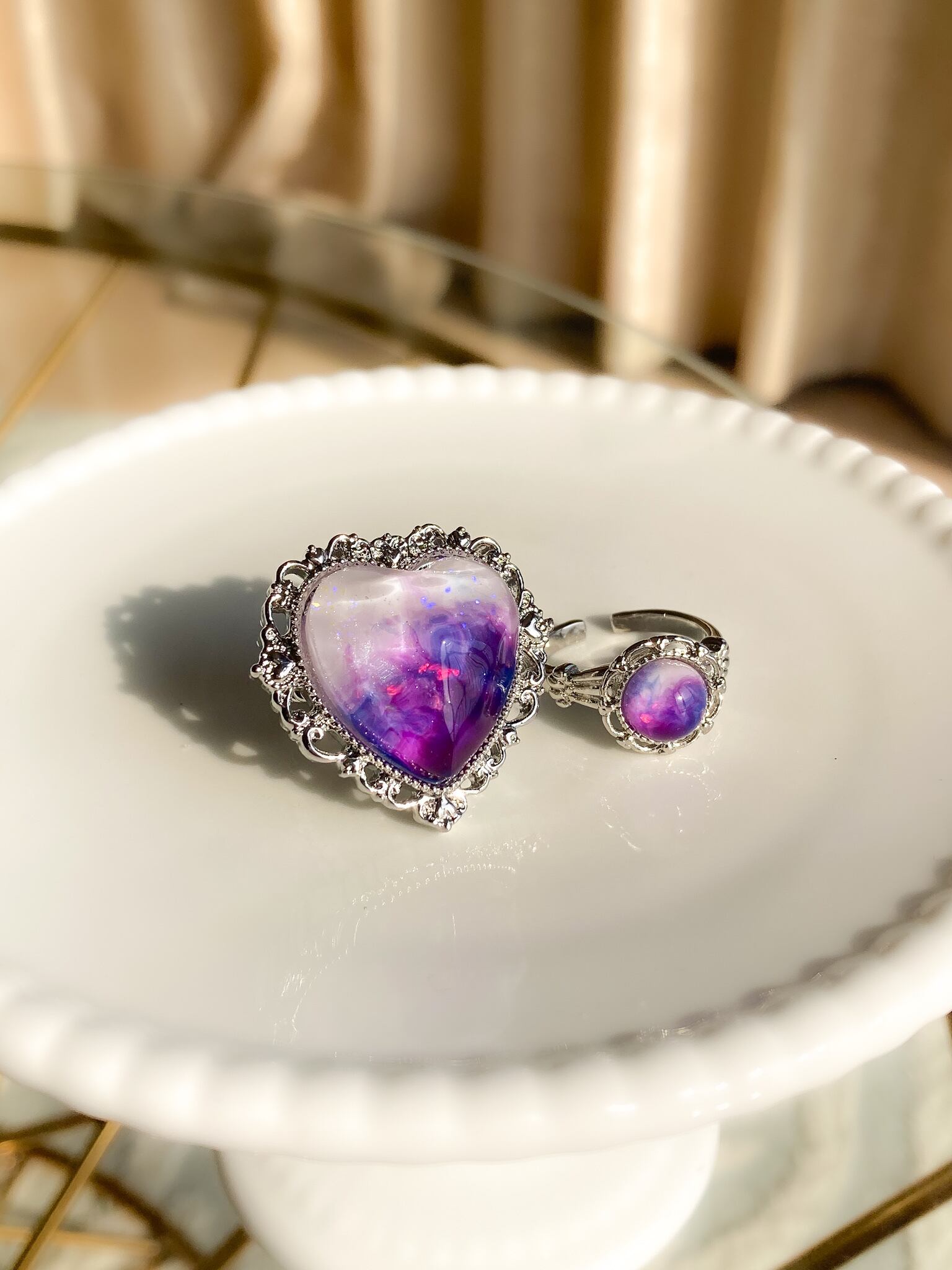 パープルやブルーカラーのレジンと、白色のレジンでマーブル模様を描いています。