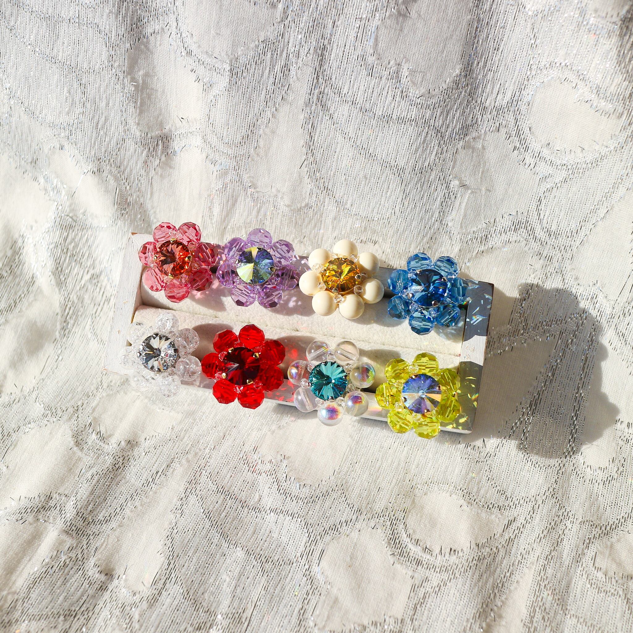 クリスタルガラスを一つ一つ手作業で縫い付けております。