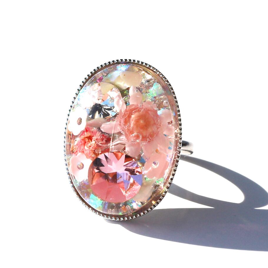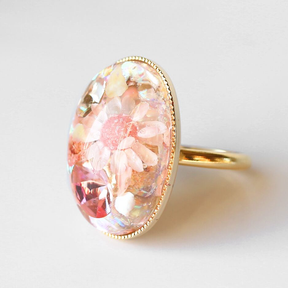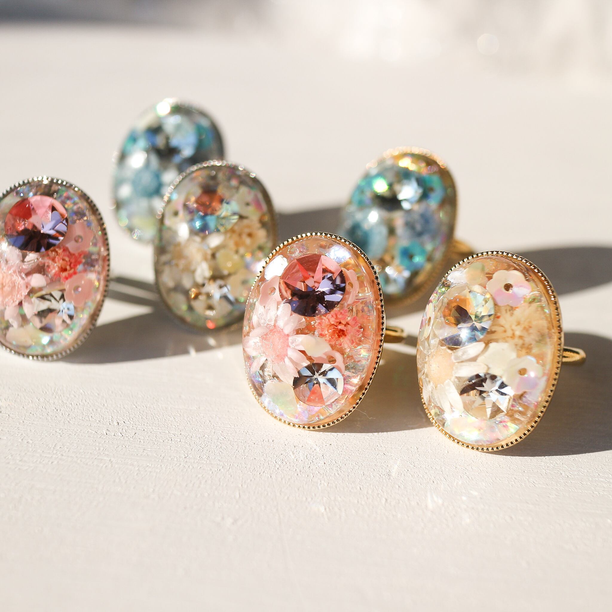 ガラスビジューや押し花などは手作業で封入している為、画像と少々異なる場合がございます。