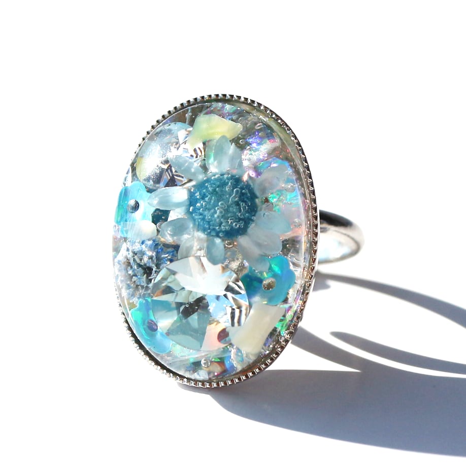 オーバルフラワーリング(クリアブルー)