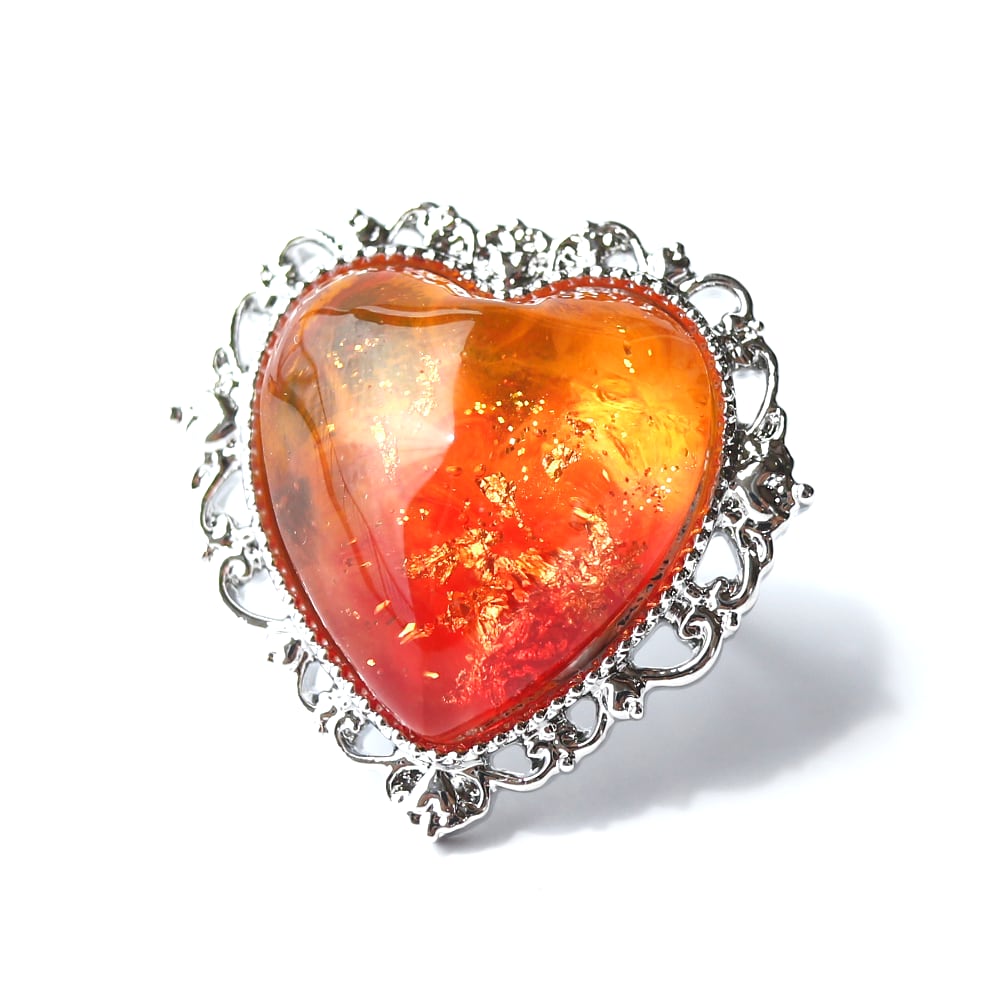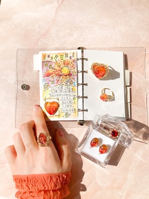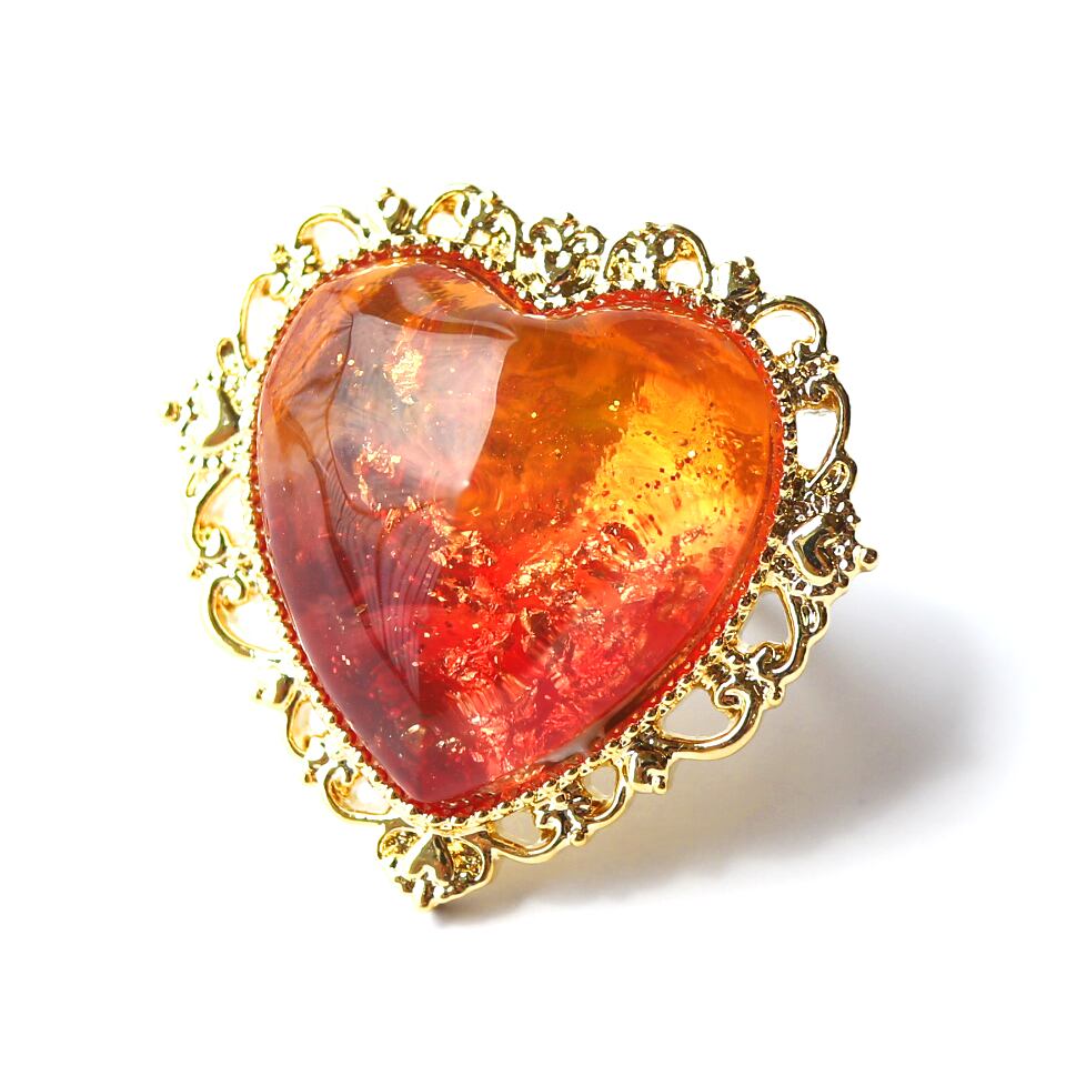 透明感のあるパーツに仕上げているため、リング土台の金具部分が透けて見え、
