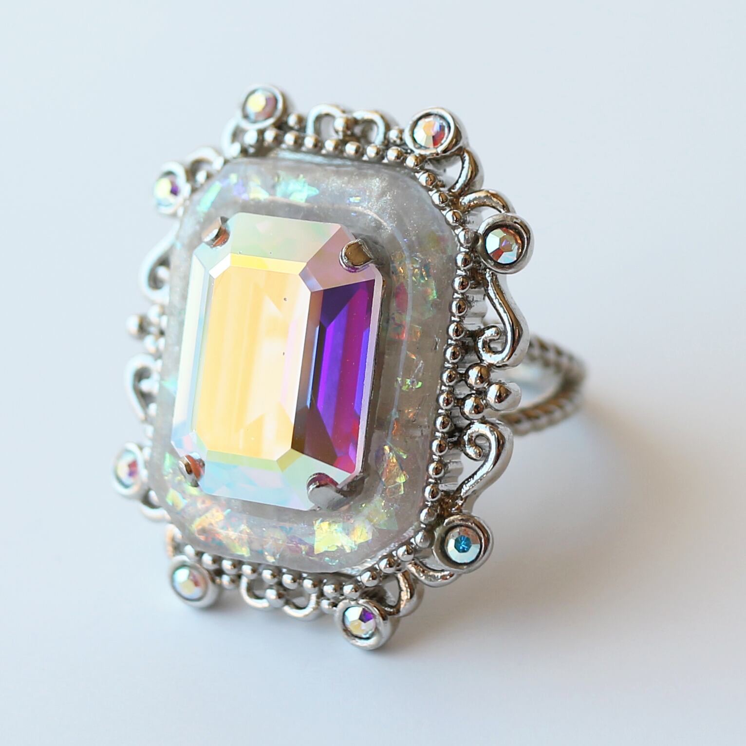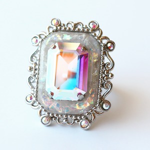 中央には、裏面にフォイル加工がされていないオーロラのクリスタルガラスを使用しています。