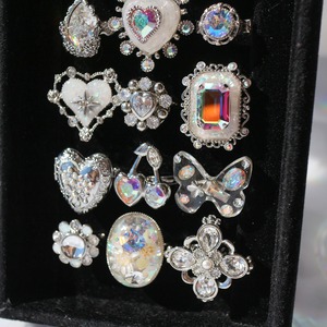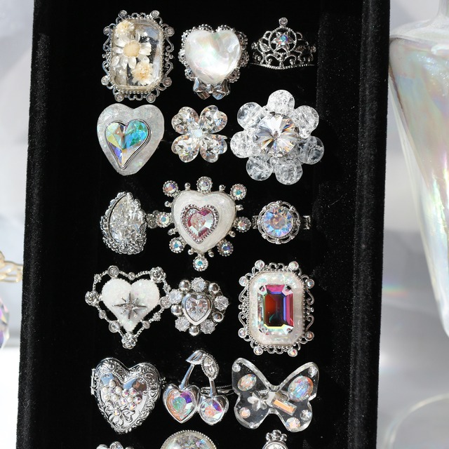 さらにガラスビジューとオリジナルリング土台と合わせることで、マルベリコらしい作品に仕上げます。
