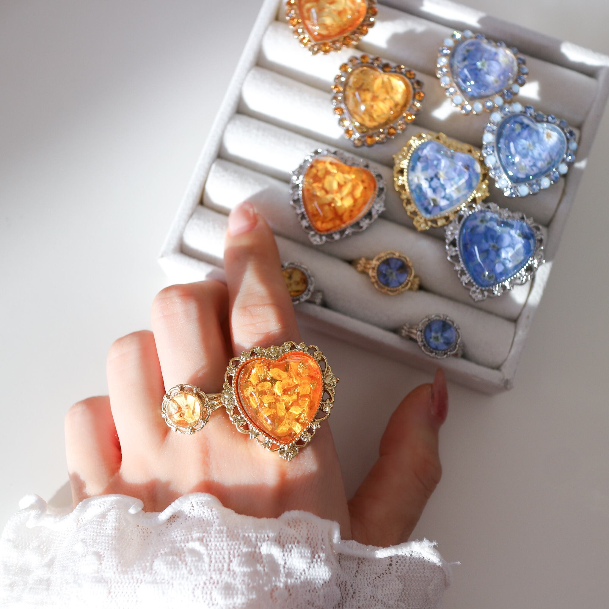 金木犀をゼリーに閉じ込めたかのようなリングです。