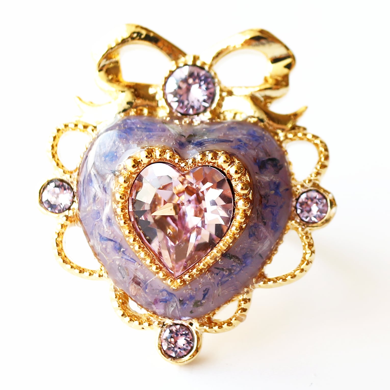 ハートフリルリボンリング(パープルフラワー)
