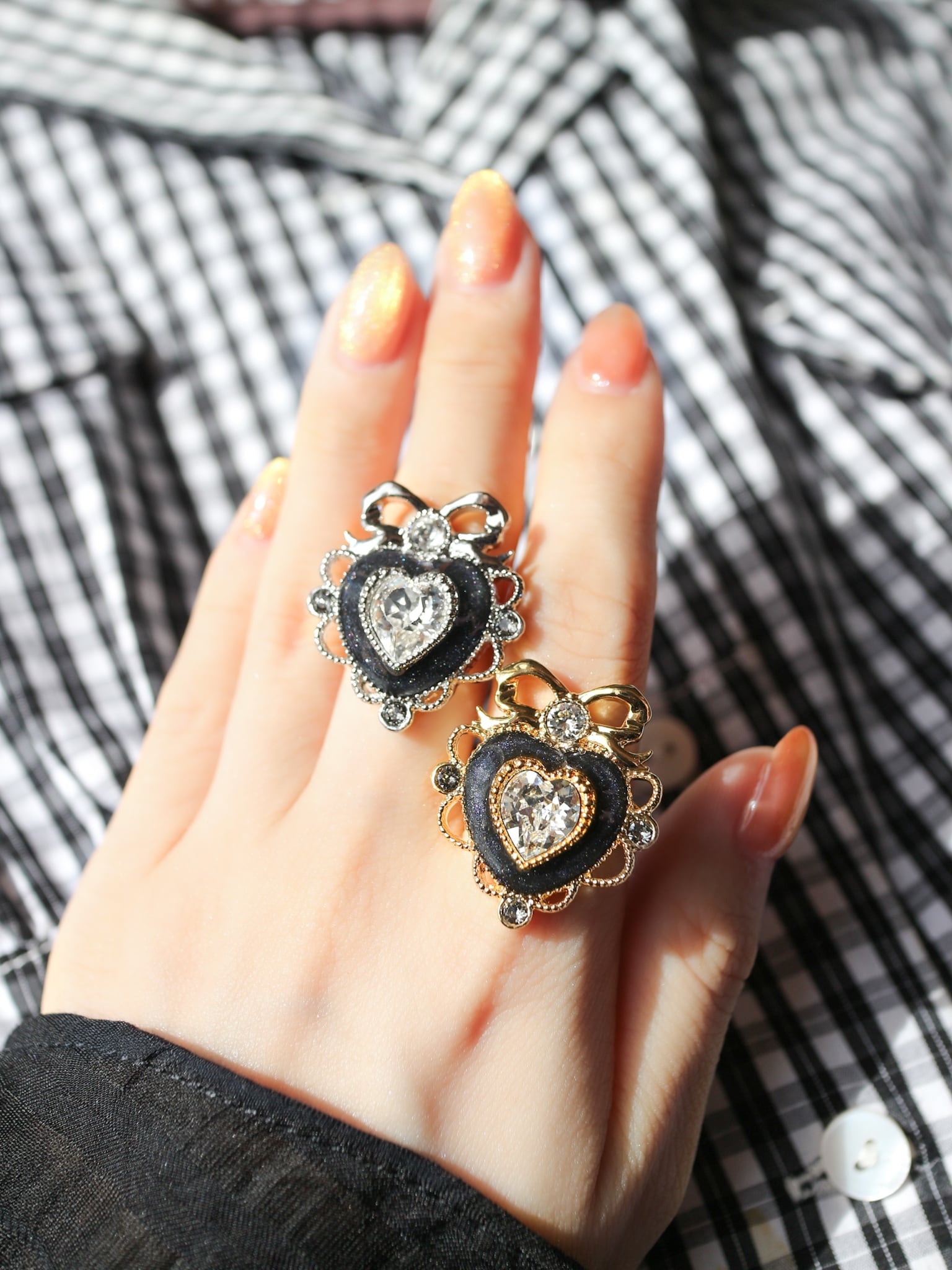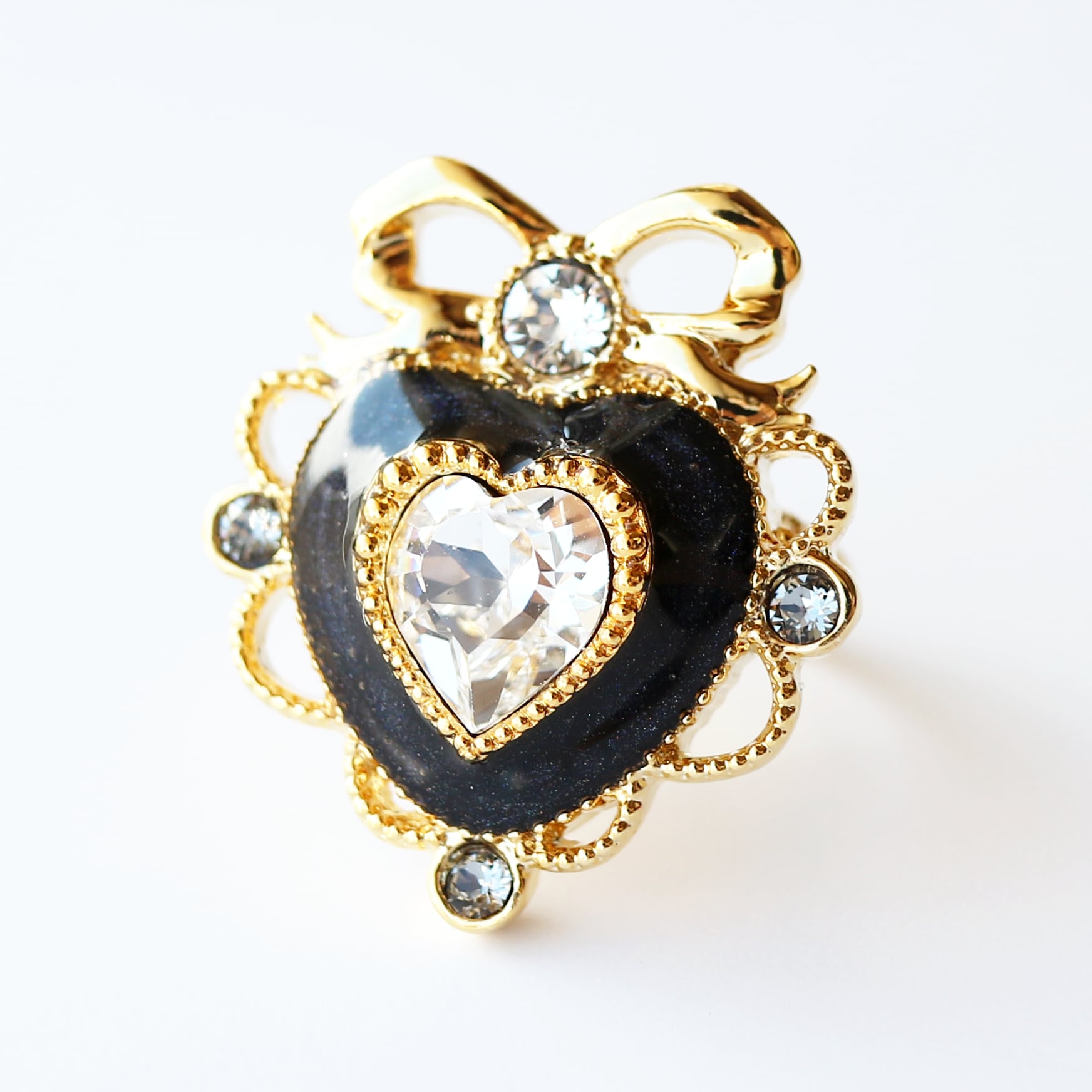 ハートフリルリボンリング(ブラック)