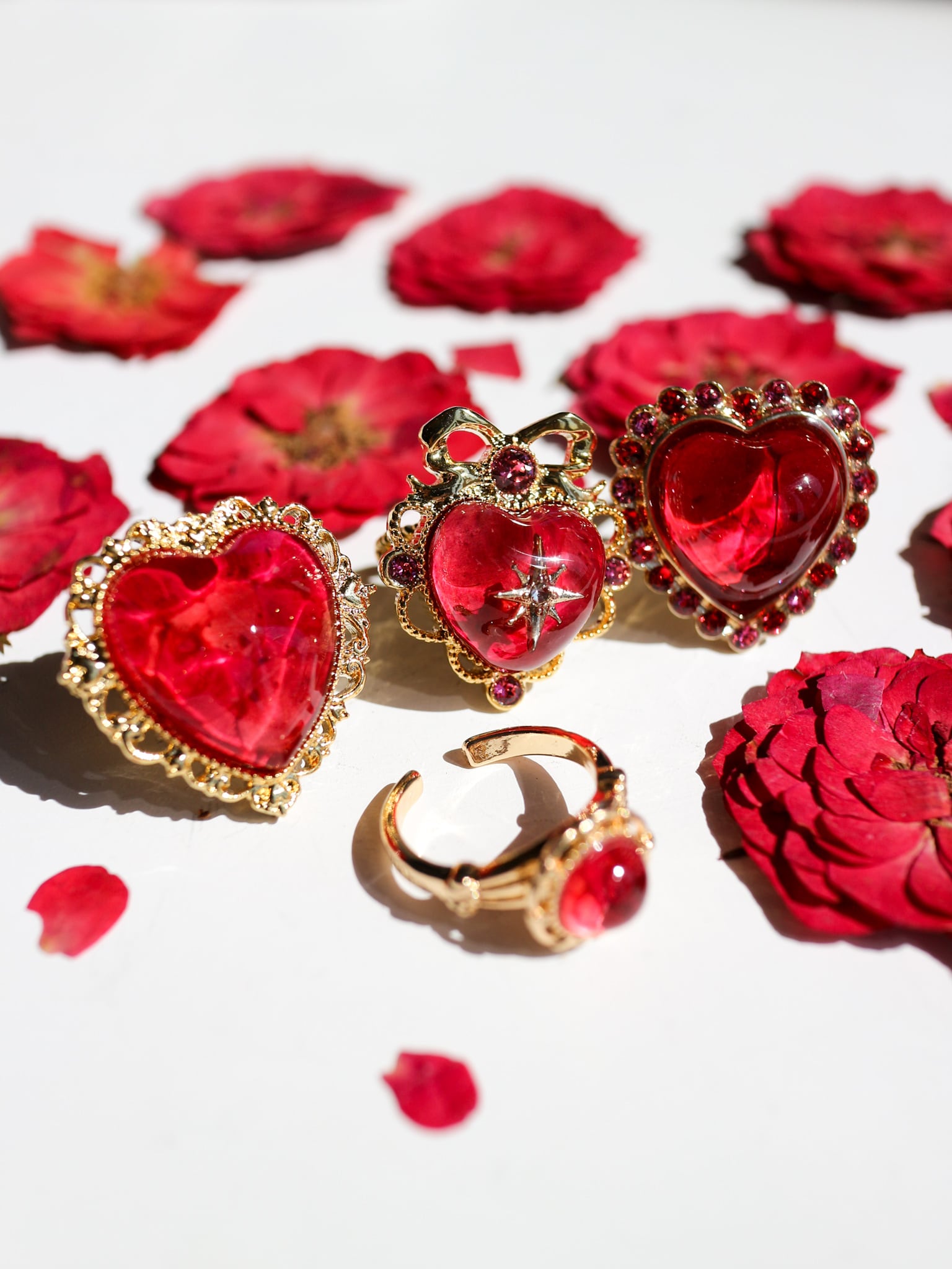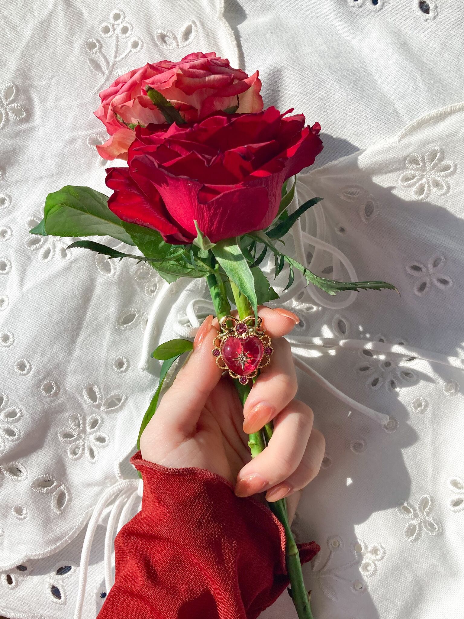 星の形をしたパーツと、ローズの押し花をハートの中に閉じ込めました。