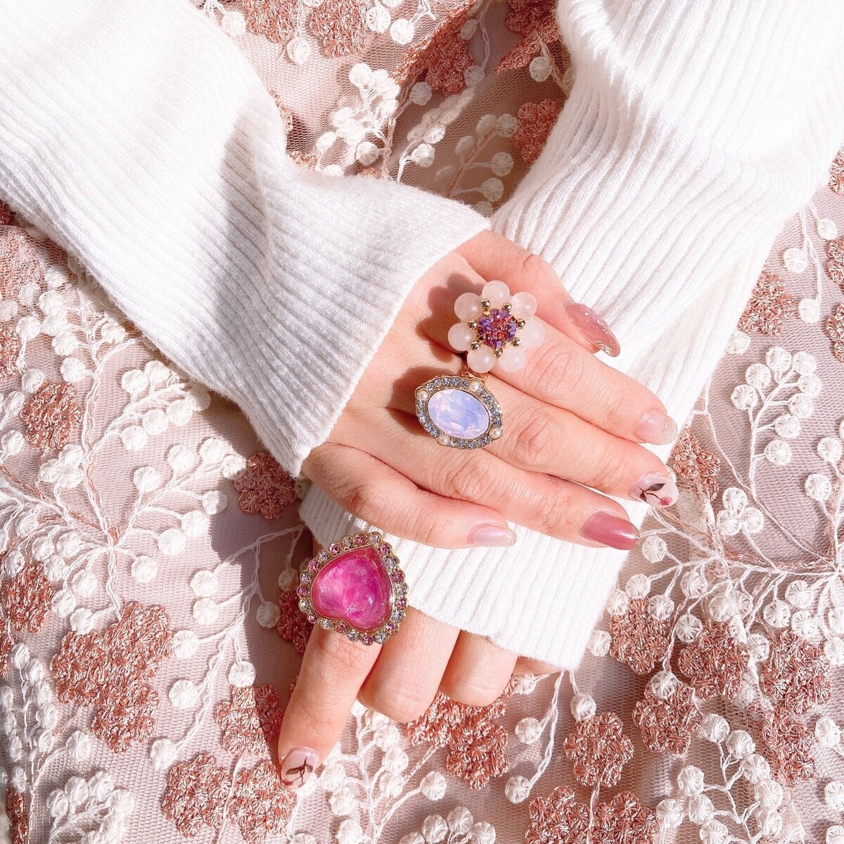 スターチスをゼリーに閉じ込めたかのようなリングです。