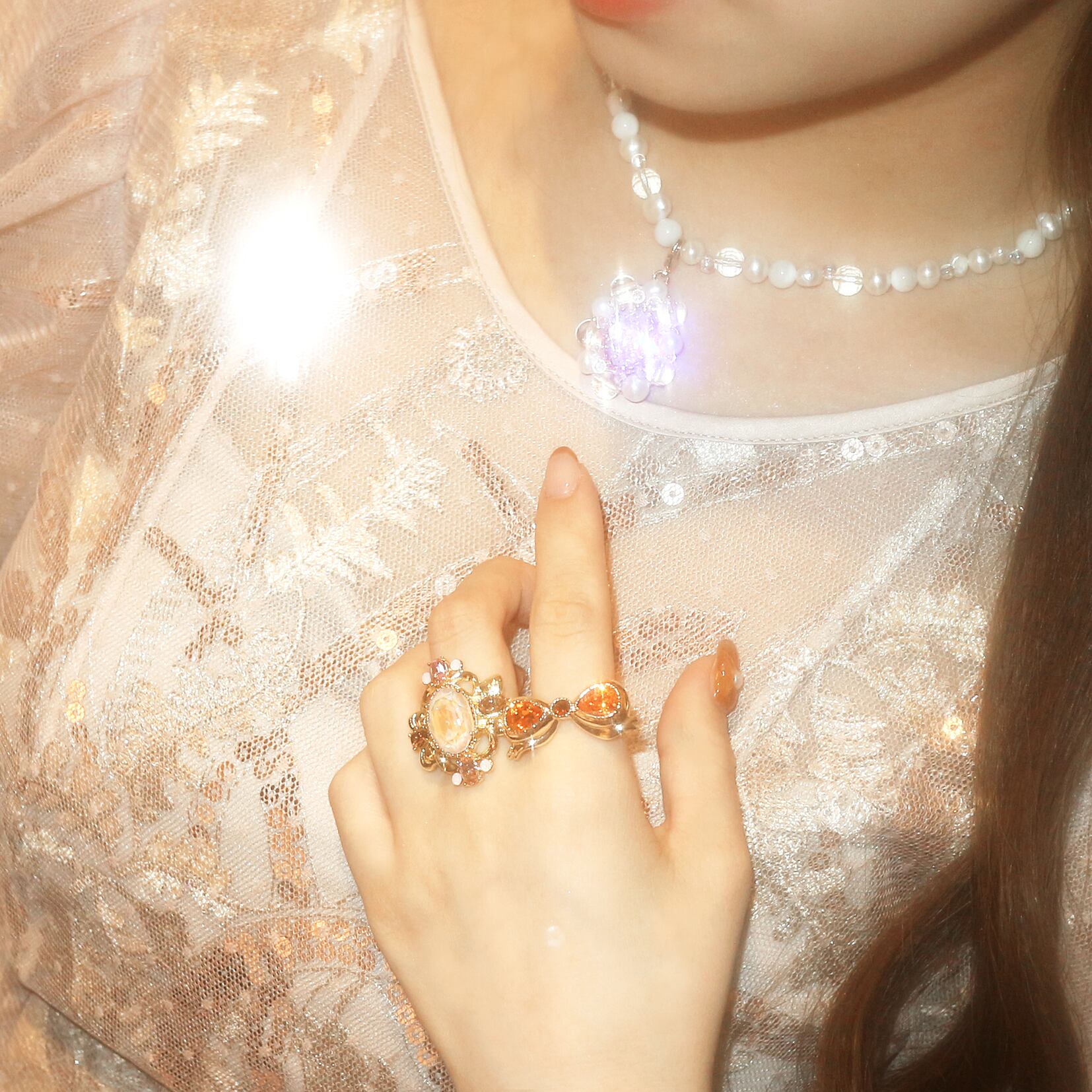 - ジュエルパールリング&ネックレス