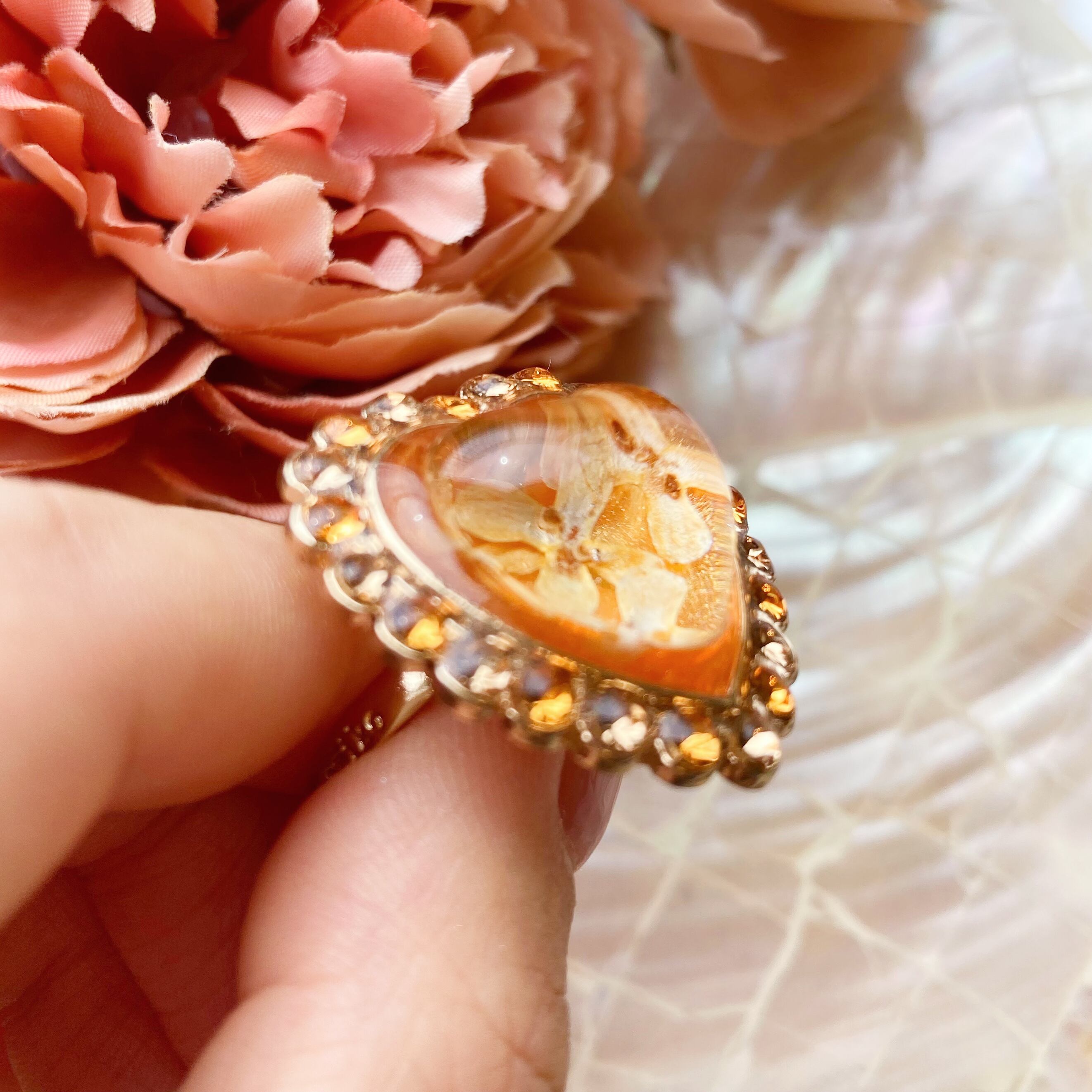 金木犀をゼリーに閉じ込めたかのようなリングです。