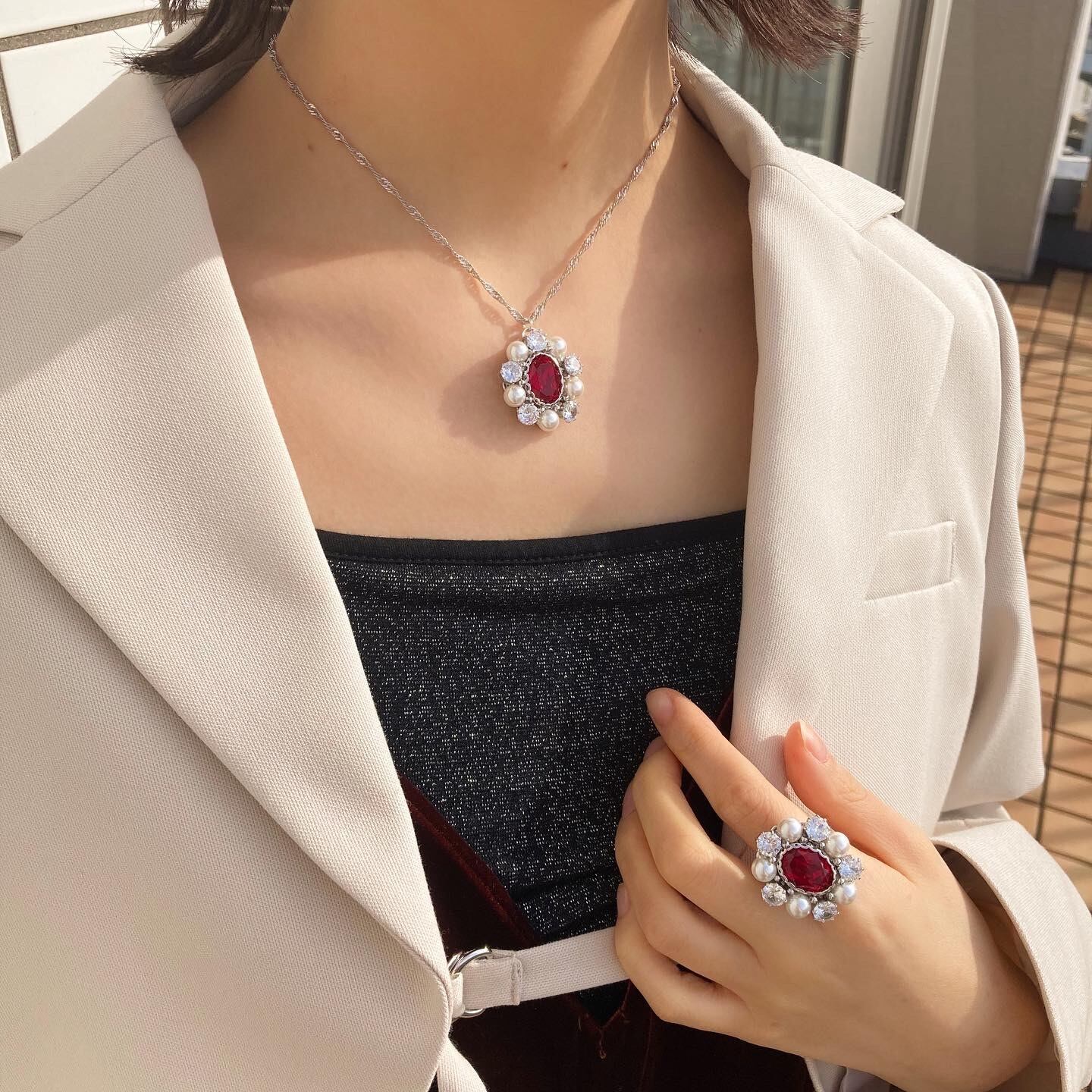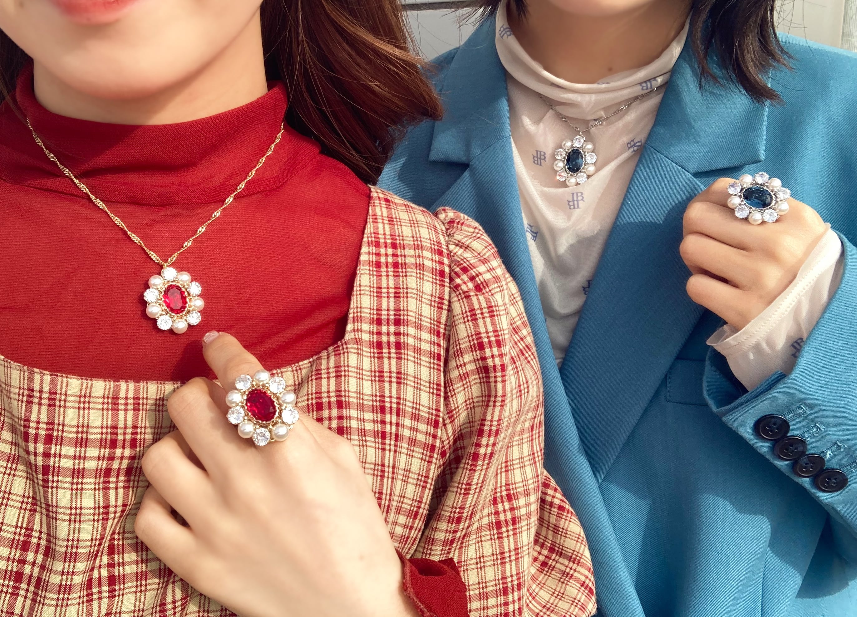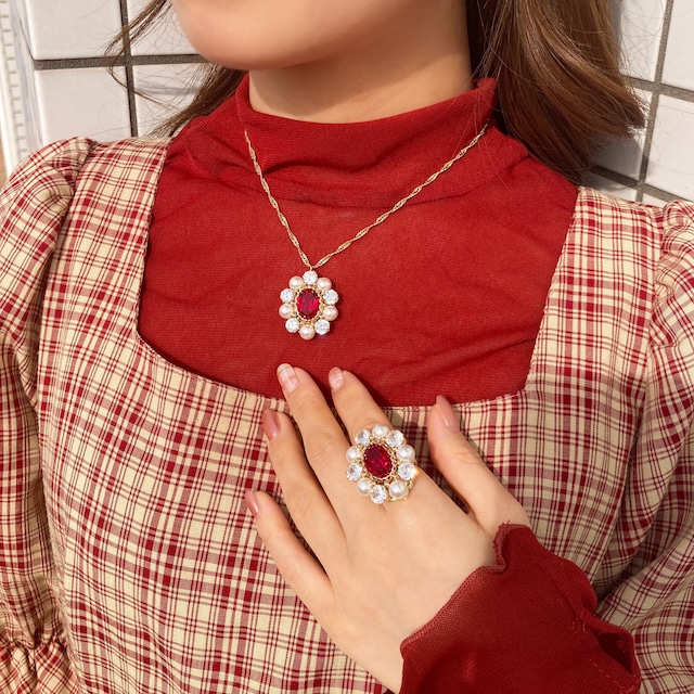 - ジュエルパールリング&ネックレス