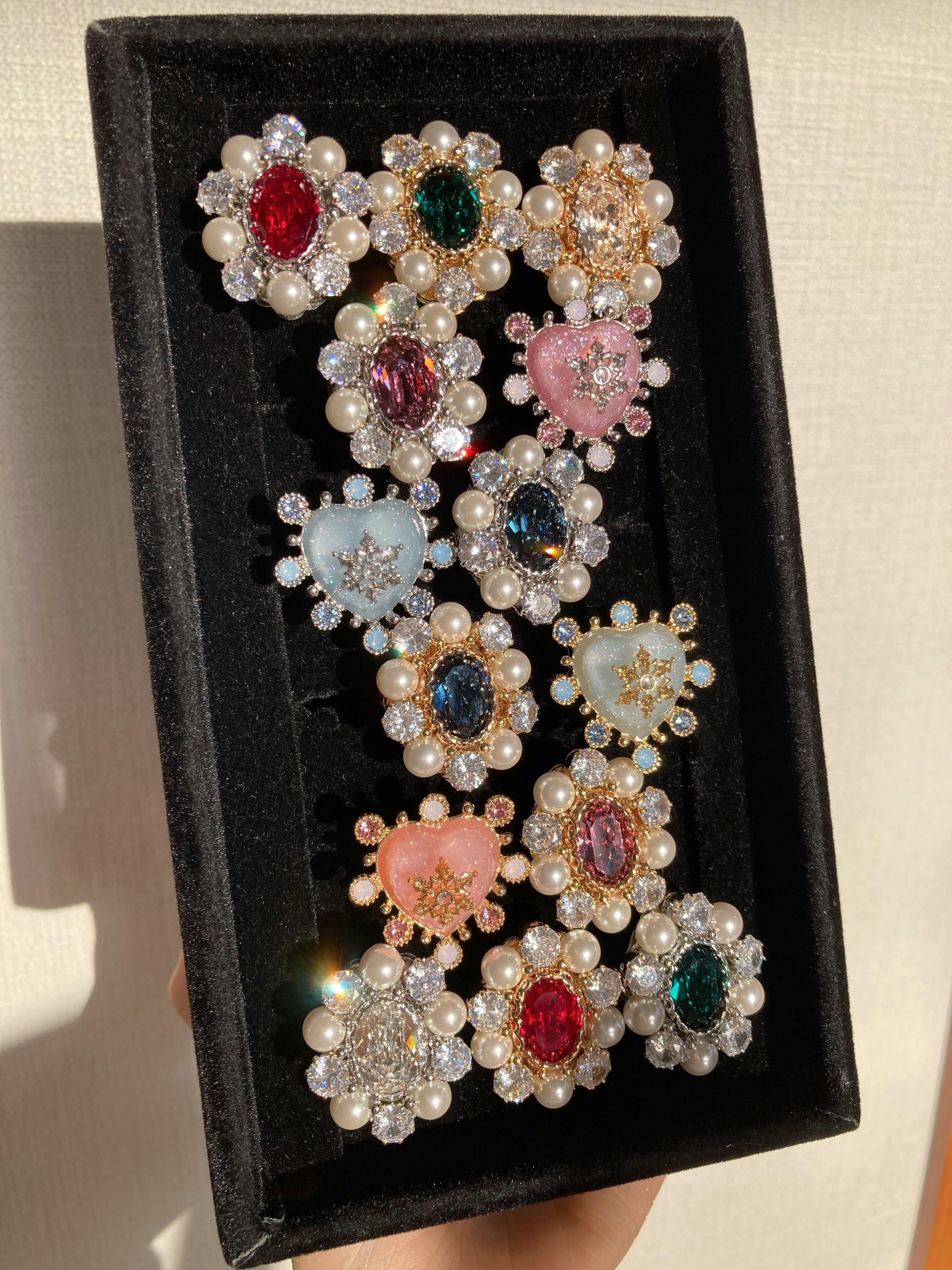 中央にはオーバル形のクリスタルガラスビジューが輝きます。
