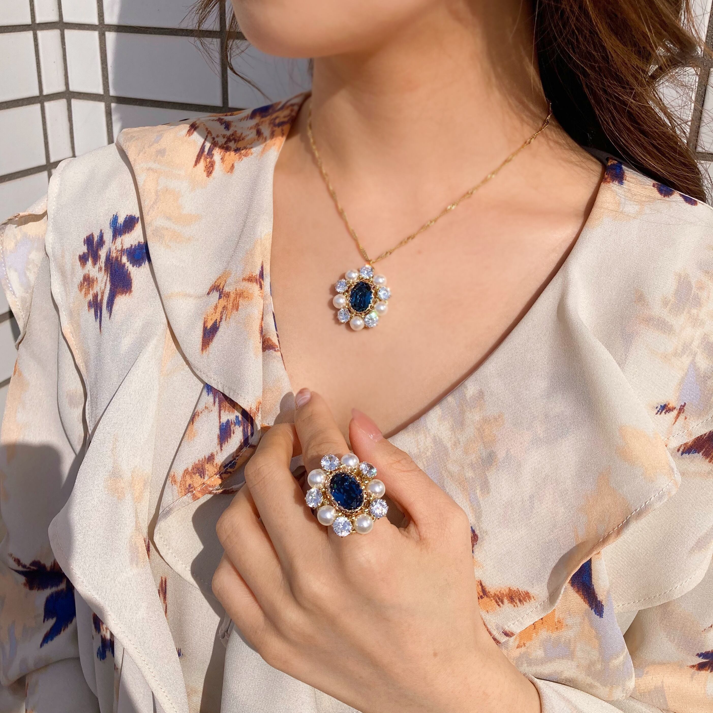 - ジュエルパールリング&ネックレス
