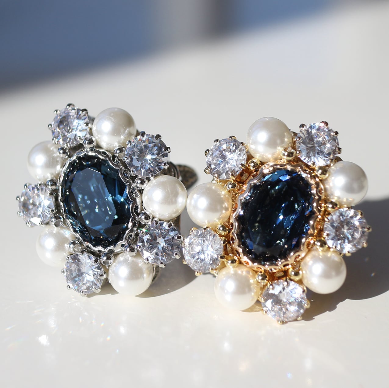 中央にはオーバル形のクリスタルガラスビジューが輝きます。