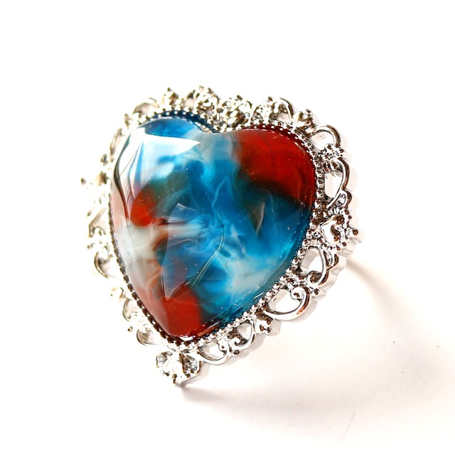 ホワイトのレジンを使い、マーブル模様のハートを制作しました。