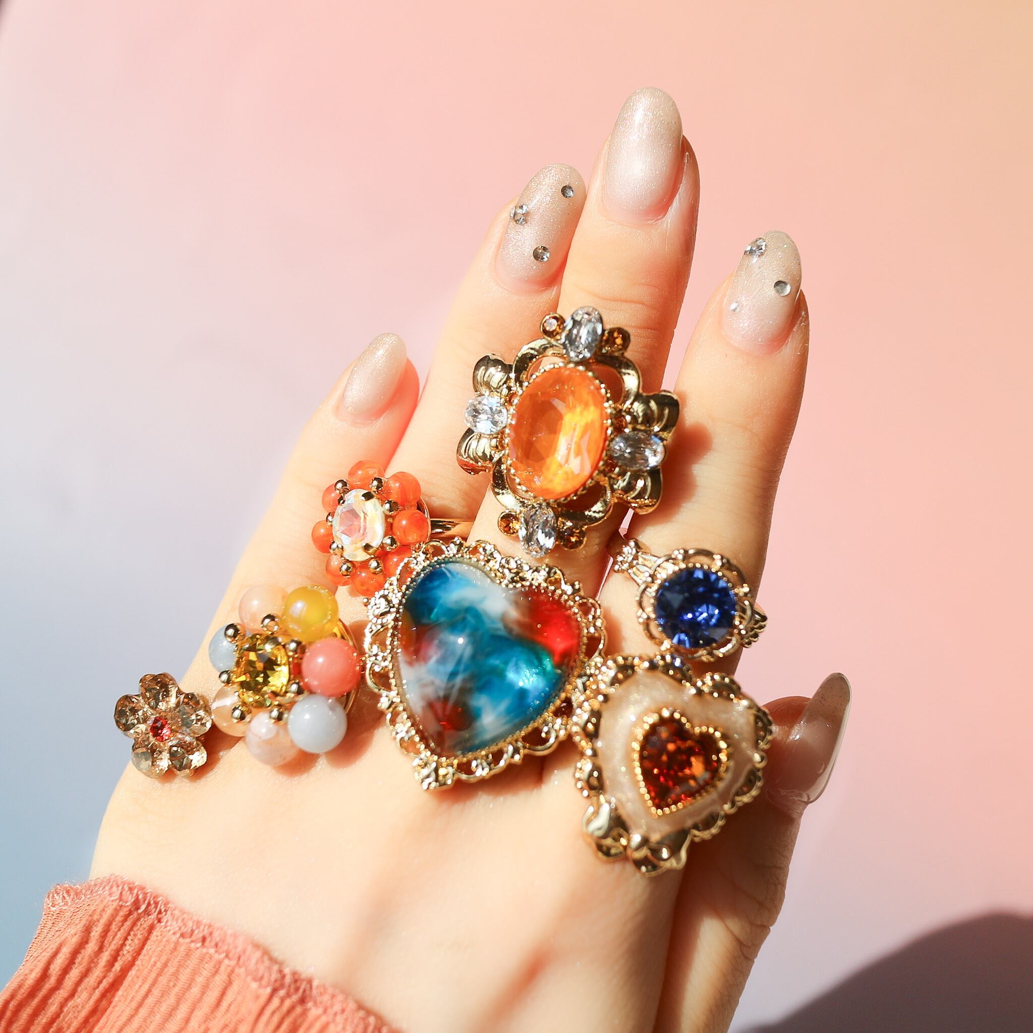 - ジュエルパールリング&ネックレス