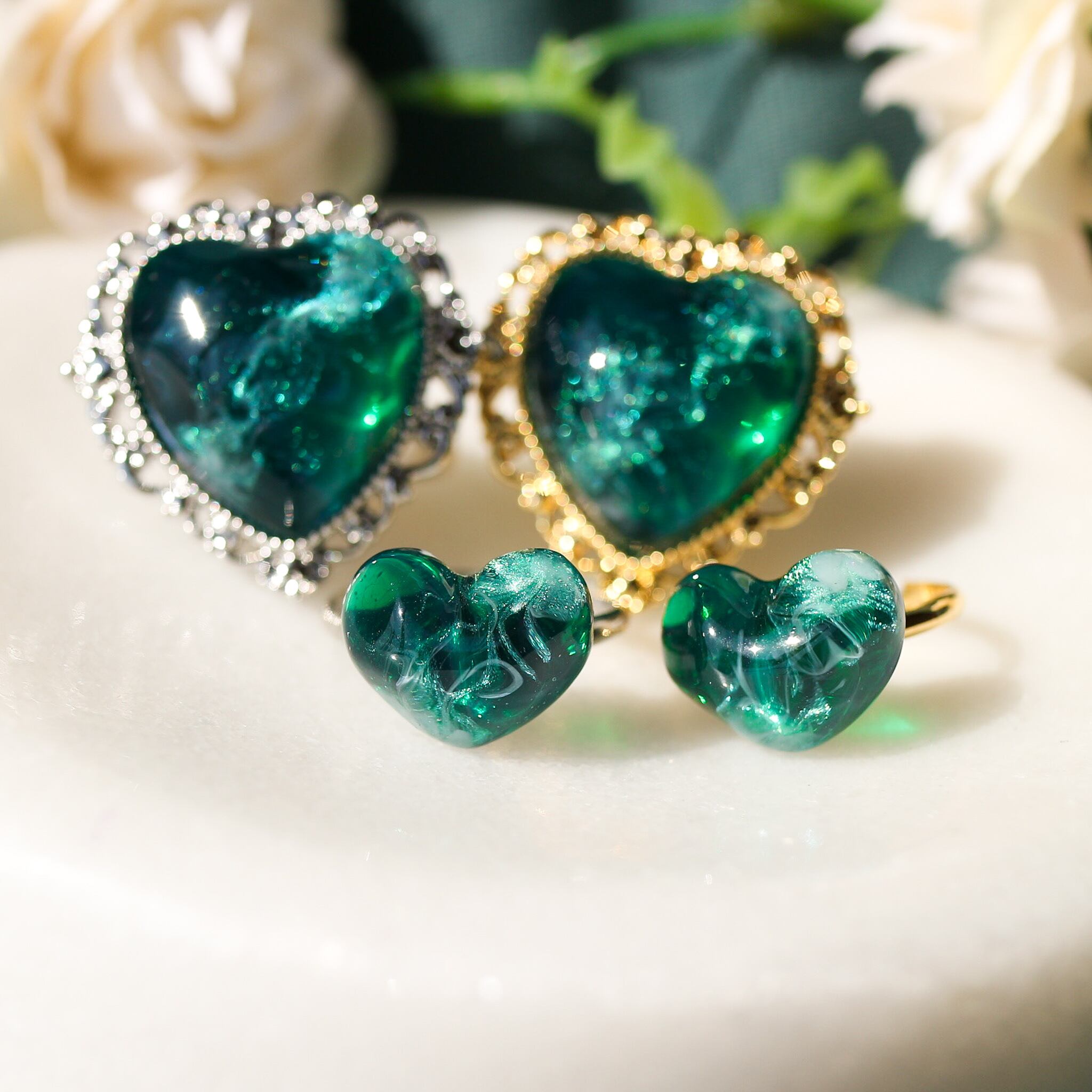 深いグリーンや偏光ラメなどのレジンを使い制作しました。