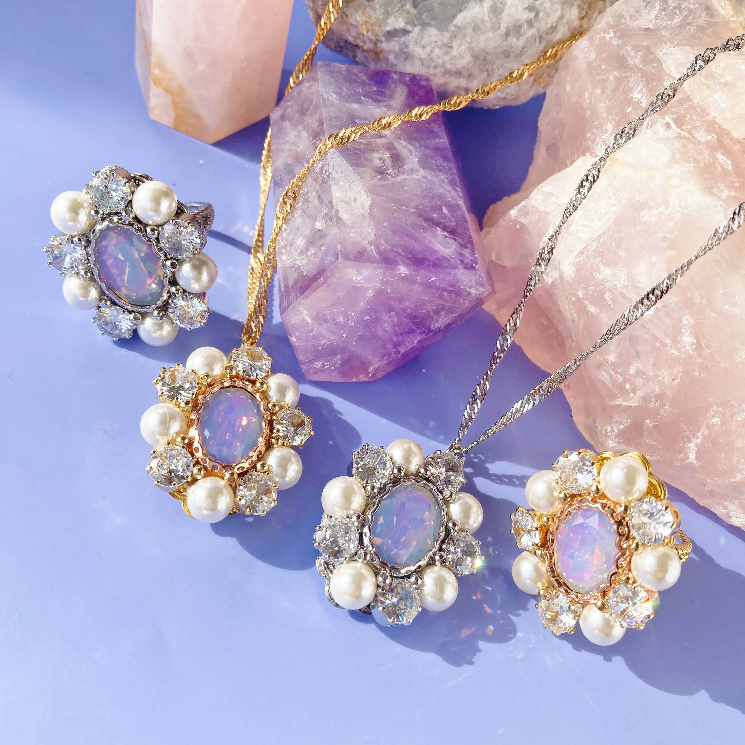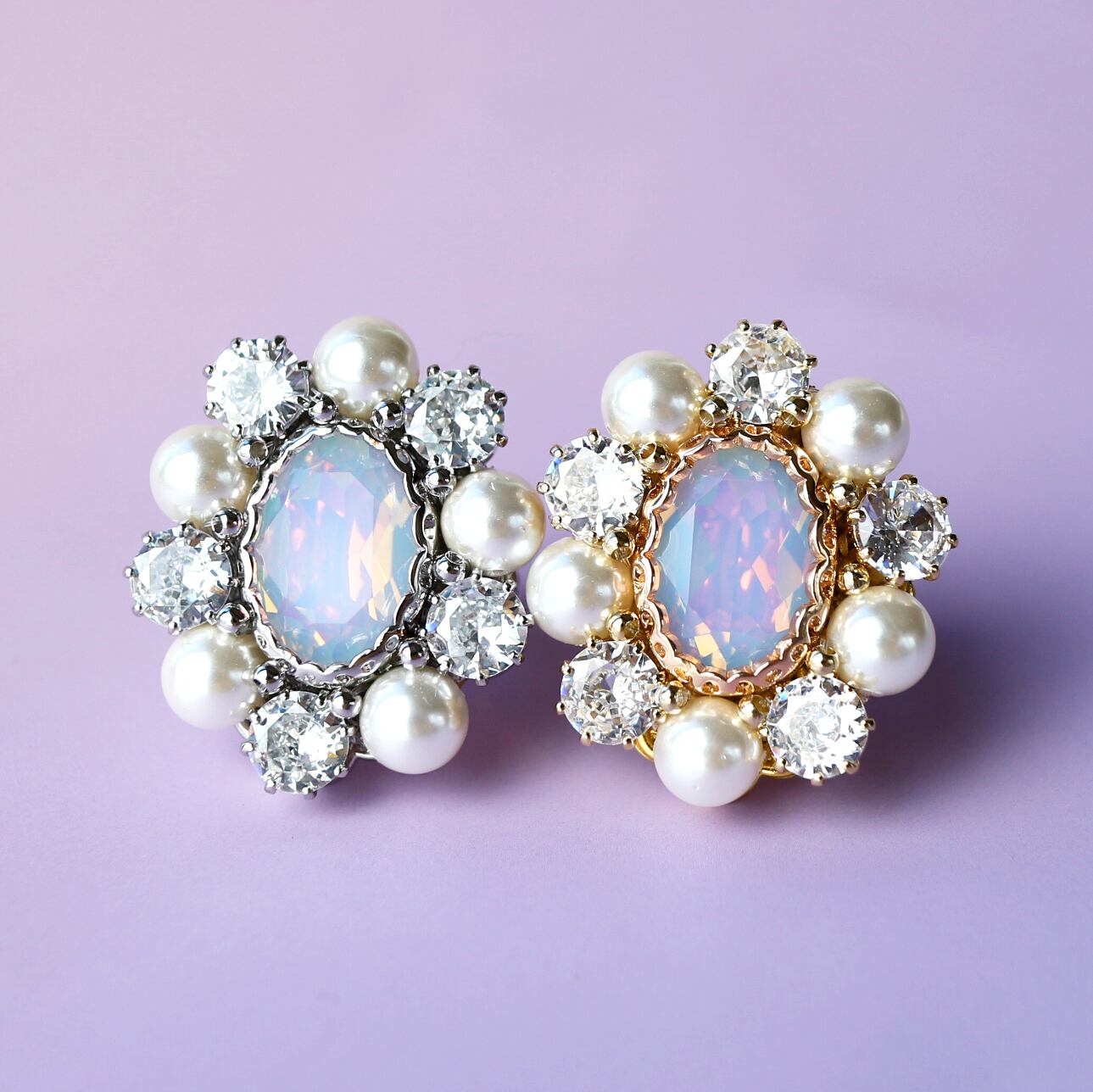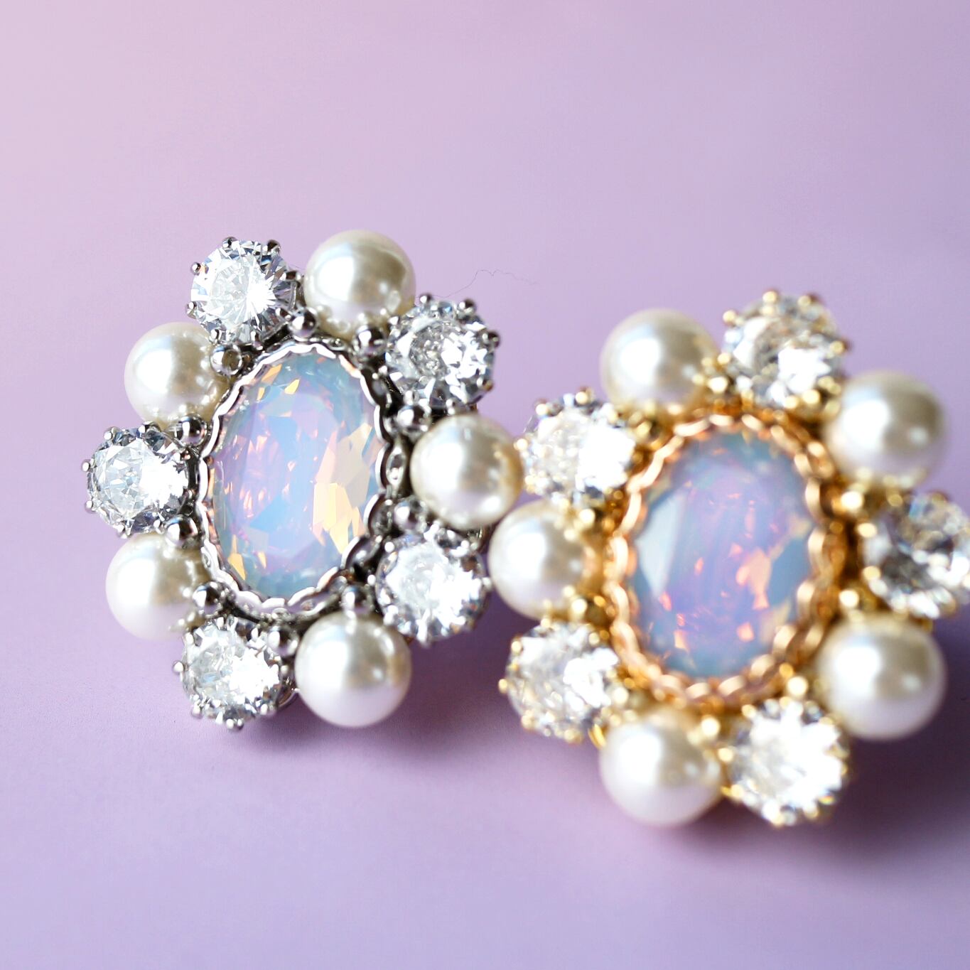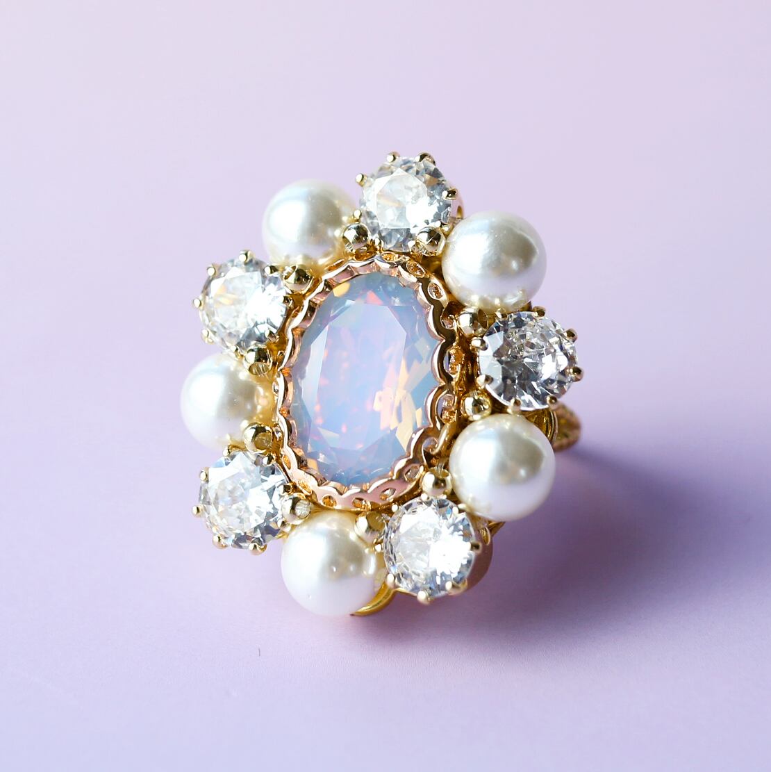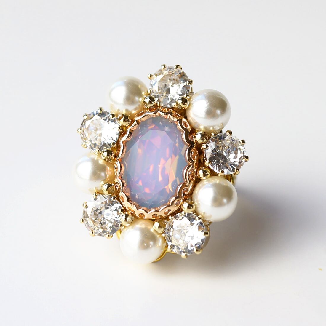 中央にはオーバル形のクリスタルガラスビジューが輝きます。